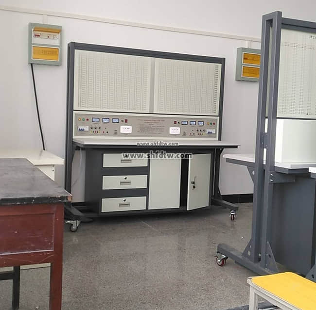 1、TWWKB-08B型維修電工電拖實(shí)訓(xùn)裝置由實(shí)訓(xùn)屏(內(nèi)置電源)、實(shí)訓(xùn)桌、實(shí)訓(xùn)儲(chǔ)物柜三大部分組成。以30mm×30mm成型方鋼作為設(shè)備主要框架材料;