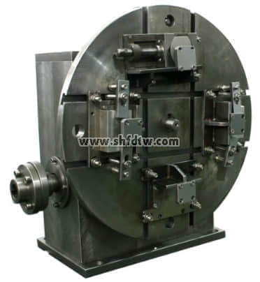精密分度頭模塊:主要由蝸輪蝸桿、箱體、圓錐軸承、卸荷式裝置、工作臺面等組成,采用工業(yè)用萬能分度頭的結構,通過電磁離合器的配合可實現(xiàn)對工作臺進行四分度??赏瓿删芊侄阮^的裝配工藝及精度檢測實訓。