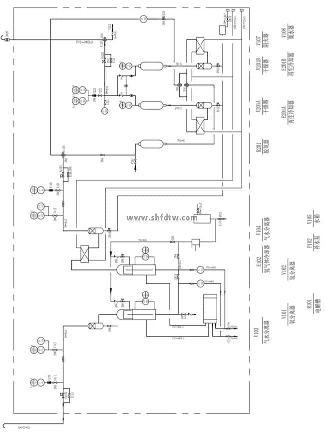 注:1,去離子水發(fā)生器用于制備并為制氫系統(tǒng)提供所必需的去離子水。
