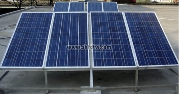 單塊250Wp太陽能電池組件,經(jīng)連接組合成電池方陣,排列放置并固定在屋頂,如上圖。