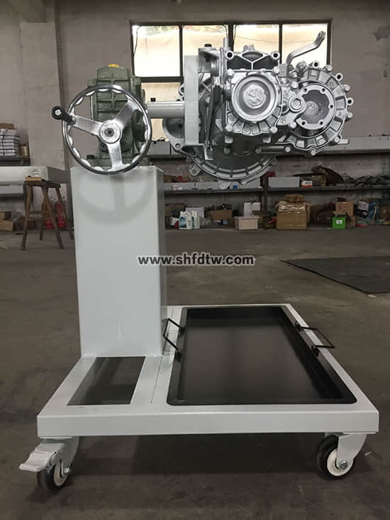 發(fā)動機附翻轉(zhuǎn)架,由減速機控制,翻轉(zhuǎn)輕松、方便、安全;360度內(nèi)可任意停放,方便發(fā)動機拆裝實訓。