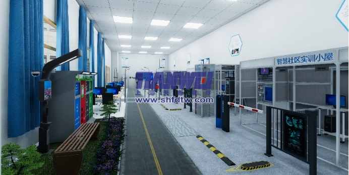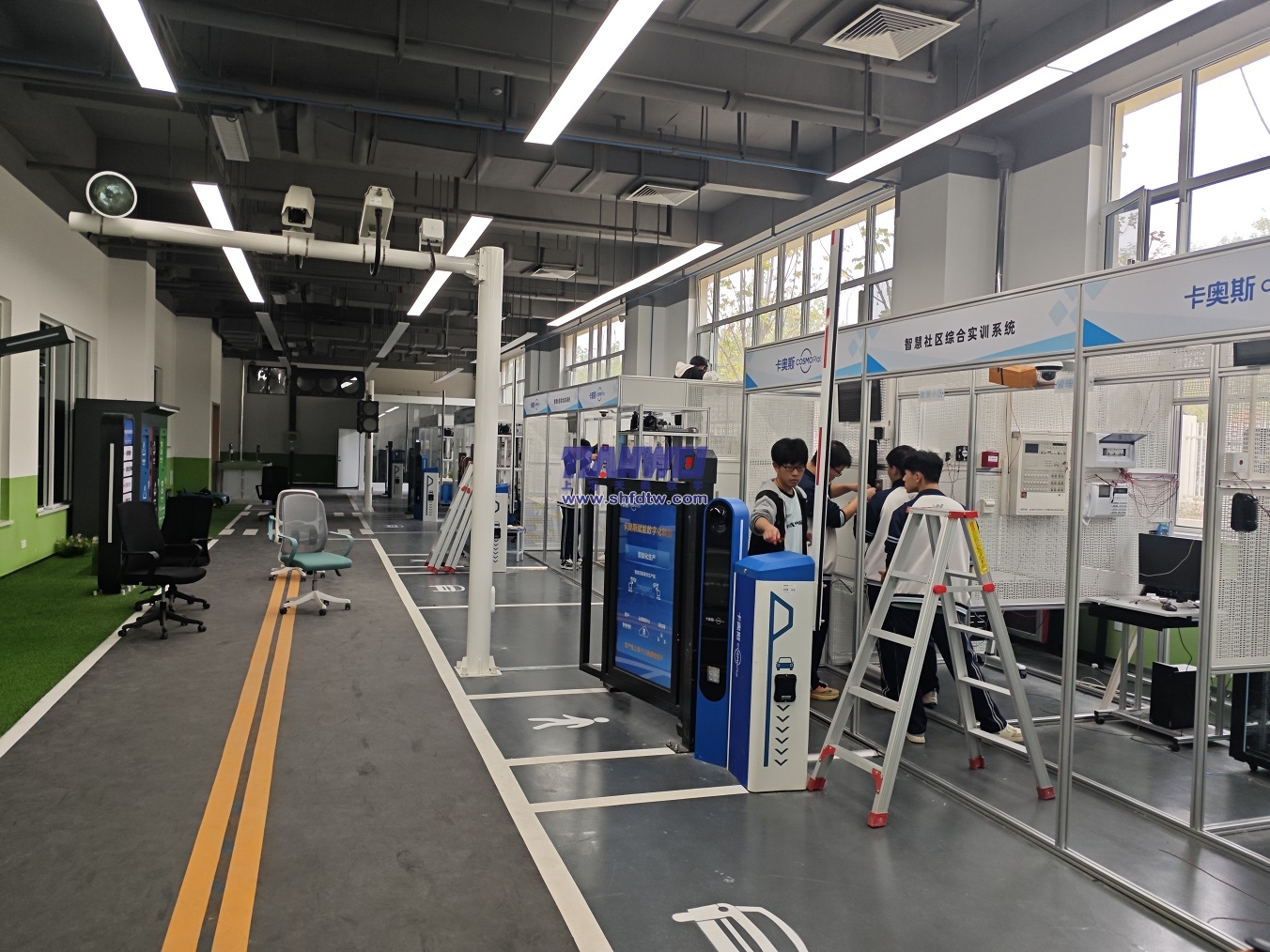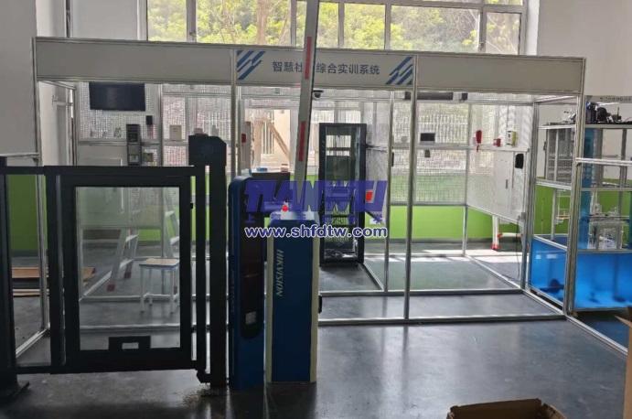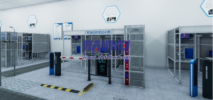 由鋁合金型材框架和安裝布線網(wǎng)孔板組成,4660mm×2220mm×2330mm(長×寬×高),分為智能大樓、智能小區(qū)、管理中心和樓道等區(qū)域,智能大樓設(shè)計為兩層結(jié)構(gòu),器件采用自攻螺絲和工程塑料卡件配合安裝。 |