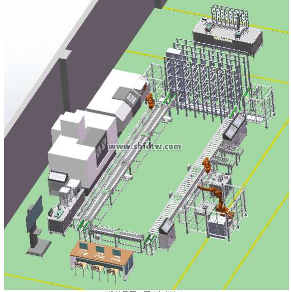 直流電機(jī)驅(qū)動(dòng),由主動(dòng)輪、被動(dòng)輪、張緊輪、防滑皮帶組成,完成工件的自動(dòng)入庫(kù)。