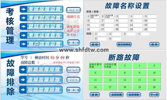 ★該系統(tǒng)由安卓藍(lán)牙的無(wú)線故障設(shè)置系統(tǒng)和觸摸屏的故障考核系統(tǒng)兩部分組成,教師在講課時(shí),用帶安卓系統(tǒng)的手機(jī)或平板電腦遠(yuǎn)程無(wú)線設(shè)置故障,遠(yuǎn)程啟動(dòng)、停止教學(xué)設(shè)備,方便教師教學(xué)講課。學(xué)生考核是在觸摸屏故障考核系統(tǒng)上完成的??稍O(shè)置20路斷路和虛接故障,6路短路故障,可單個(gè)設(shè)置也可多個(gè)故障同時(shí)設(shè)置,并有全部設(shè)置故障和全部清除等功能,教師界面包含故障設(shè)置、時(shí)間設(shè)置、密碼設(shè)置、成績(jī)查詢,學(xué)生界面包含故障排除、故障數(shù)量、剩余時(shí)間等功能,配套汽車教具廣泛的應(yīng)用與各高校汽車相關(guān)專業(yè)教學(xué)。