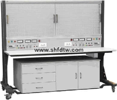 本實訓(xùn)臺由實訓(xùn)屏(內(nèi)置電源)、實訓(xùn)桌、實訓(xùn)儲物柜三大部分組成。