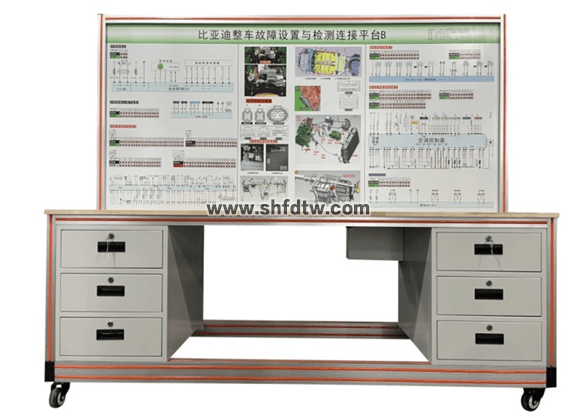 1.整車故障設(shè)置與檢測連接平臺(帶雙抽屜)1套:新能源三電電控系統(tǒng)1套,組合儀表等其他低壓電器電控1套;