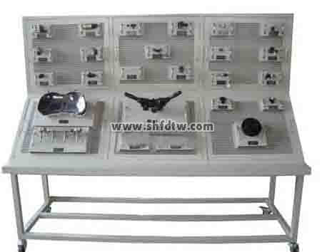 儀表總成、發(fā)動(dòng)機(jī)控制單元、前組合大燈、后組合尾燈、雨刮電機(jī)、起動(dòng)馬達(dá)、發(fā)動(dòng)機(jī)、音響系統(tǒng)、點(diǎn)火線圈、點(diǎn)火開關(guān)、檢測端子、組合開關(guān)、搖窗電機(jī)、后視鏡、中央線路板、中控門鎖、防盜系統(tǒng)、曲軸信號盤及凸輪軸信號盤、進(jìn)氣溫度傳感器、氧傳感器、發(fā)動(dòng)機(jī)轉(zhuǎn)速傳感器、凸輪軸位置傳感器、空氣流量傳感器等、智能故障設(shè)置盒總成、可移動(dòng)臺(tái)架、使用說明書及實(shí)驗(yàn)指導(dǎo)書等等。