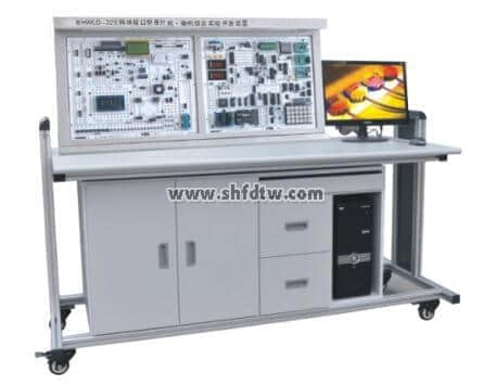 單片機控制功能實訓考核裝置采用鋁木臺式結構。實訓臺的抽屜柜用于存放實訓模塊,抽屜柜與臺面之間布置實訓模塊安裝支架,最上一層是工作臺臺面。用于技能競賽時在臺面上放置設備安裝底板,在底板上安裝試題擬定的單片機控制裝置需要的模塊,連接控制電路,編寫的控制程序輸入單片機后,按下運行指令開關,單片機控制裝置就按程序運行。放置在單片機實訓室中,這就是一張實訓臺。當講解理論或實訓項目中的相關知識時,可以當做課桌;當需要進行實際操作時,將臺面打開,就露出放置在安裝支架上的模塊,在需要的實訓模塊間按實訓要求連接電路,編寫控制程序,就可以按照設計的實訓項目進行單片機技術的教學。