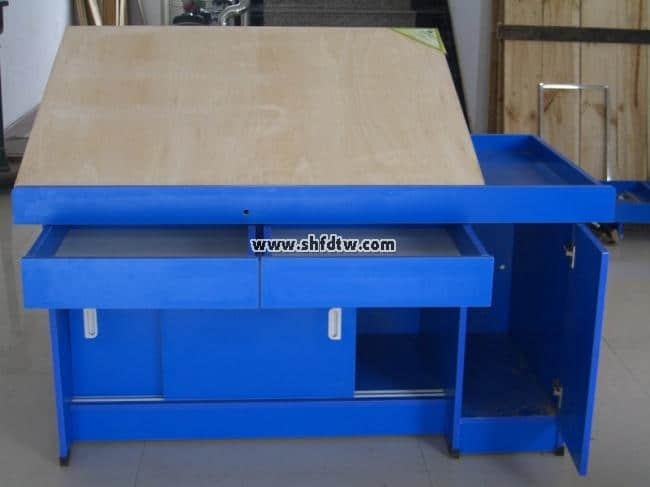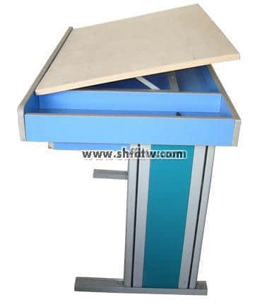 主要功能:1、桌面可調(diào)節(jié)傾角、桌子側(cè)面折疊板翻開可放置儀器、工具,下面抽屜供放學(xué)習(xí)資料、工具書等。