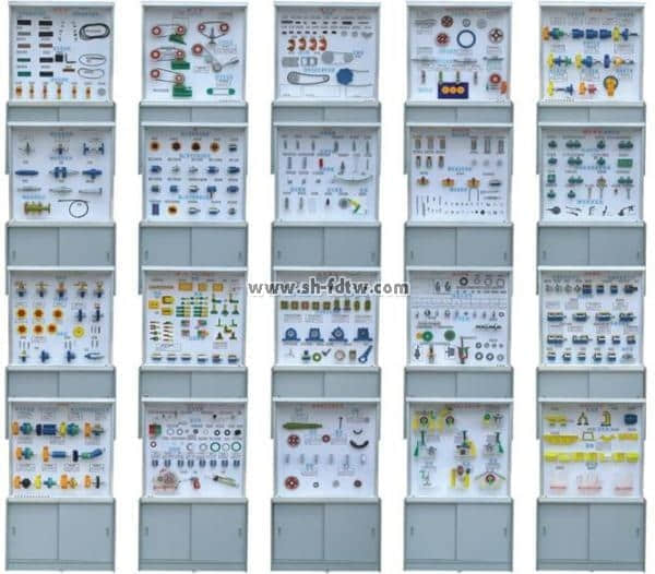 該套共分二十個柜400余種物零件模型。外型用高級鋁合金柜架,板面用紫紅色金絲絨做底,模型材料用各色有機玻璃和硬聚氯,并附有銀滌淪不干膠作必要圖表和文件字說明,形象逼真,制作工藝美觀。使用本陳列柜能提高教學(xué)效果,節(jié)約學(xué)時,是一套理想機械課程的示教陳列室設(shè)備。