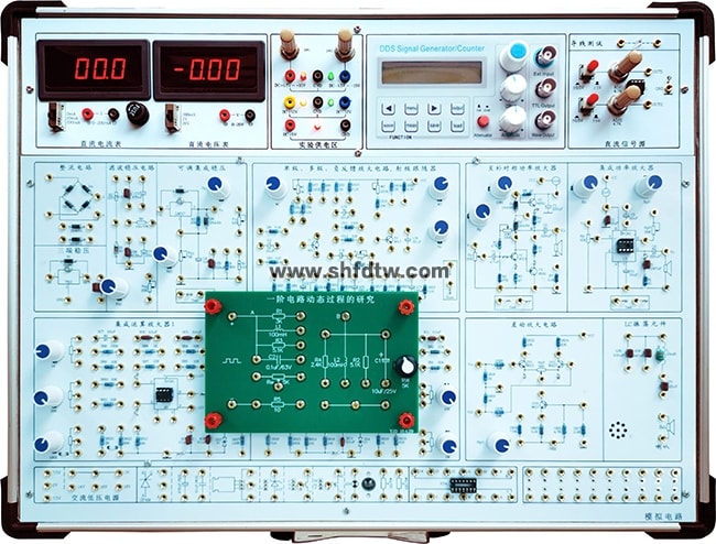 含機箱、工作電源、常用模擬信號源、實驗電路區(qū)和分立元件 |