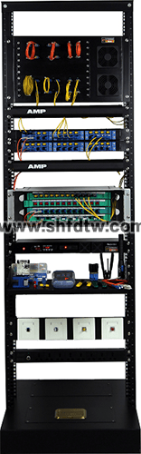 1)裝置選用19英寸開放式落地型機(jī)架,外形尺寸:長0.6米,寬0.53米,高1.8米。機(jī)架下部有4個(gè)地腳螺絲固定,保證設(shè)備牢固,能夠承受實(shí)訓(xùn)打線沖擊力。