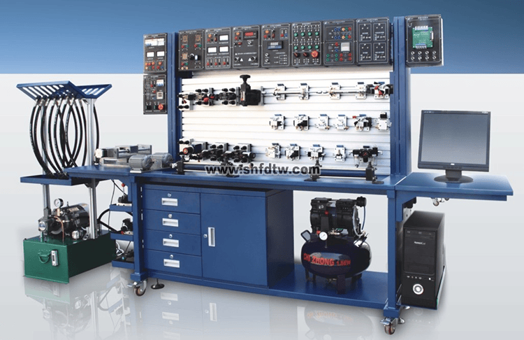 2、該實驗臺的所有模塊的電氣控制端口、液壓元件控制油口、氣動元件控制口等全部對外開放,可根據自己設計需求靈活組裝和設計,可達到很好的實訓效果;