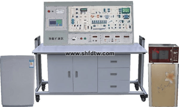 多功能家用電子產(chǎn)品電氣控制綜合實訓(xùn)裝置(含風(fēng)扇、電飯煲、微波爐、消毒柜、洗碗機(jī)、泳衣機(jī)實訓(xùn)功能)是根據(jù)《中華人民共和國教育行業(yè)標(biāo)準(zhǔn)-電子技術(shù)應(yīng)用專業(yè)儀器設(shè)備配備標(biāo)準(zhǔn)》,依照中華人民共和國勞動和社會保障部發(fā)布的《"家用電子產(chǎn)品維修工"職業(yè)技能實訓(xùn)和鑒定設(shè)備技術(shù)規(guī)范》,按照職業(yè)教育的教學(xué)和實訓(xùn)要求而研制的。適合高職院校、職業(yè)學(xué)校的應(yīng)用電子技術(shù)、家用電器維修、電子電器應(yīng)用與維修專業(yè)等專業(yè)的家用電子產(chǎn)品原理與維修的實訓(xùn)教學(xué)。