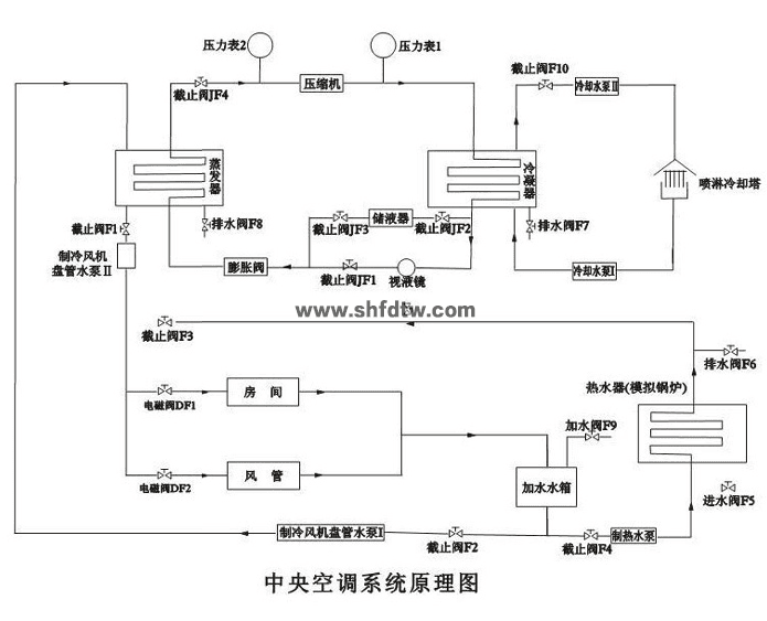 隨著社會的發(fā)展,人們的生活水平不斷提高,中央空調(diào)在大型商場、賓館、寫字樓、商住樓等許多方面得到越來越廣泛的應(yīng)用。中央空調(diào)的設(shè)計(jì)、管理、維修在現(xiàn)代生活中也越來越重要。為便于人們了解、學(xué)習(xí)中央空調(diào)的基本原理、基礎(chǔ)知識,掌握其管理、維護(hù)及維修方法,本公司專業(yè)技術(shù)人員開發(fā)生產(chǎn)中央空調(diào)實(shí)驗(yàn)裝置系列產(chǎn)品。