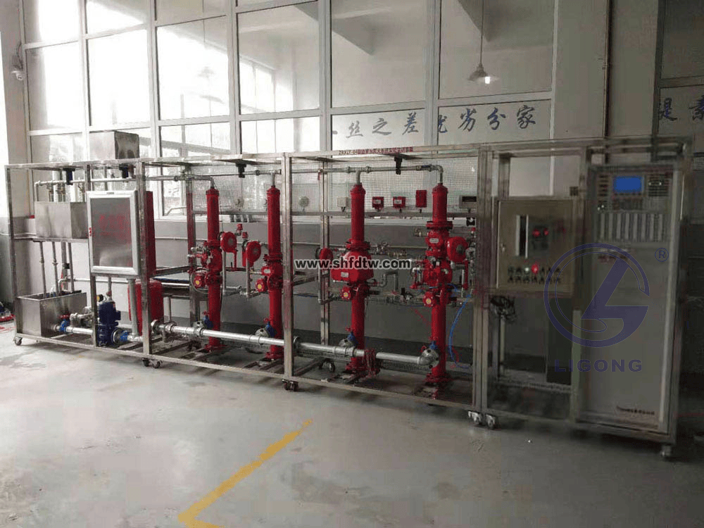 2、自動(dòng)噴水滅火系統(tǒng)與消火栓系統(tǒng)共用低位消防水箱與屋頂消防水箱,并由消防水泵、穩(wěn)壓增壓設(shè)備,氣泵、濕式報(bào)警閥,干式報(bào)警閥,雨淋報(bào)警閥,預(yù)作用報(bào)警閥,水流指示器,噴頭,末端試水裝置組成完整的自動(dòng)噴水滅火系統(tǒng),可以演示濕式自動(dòng)噴水、干式、雨淋、預(yù)作用滅火系統(tǒng)的組成與工作原理。