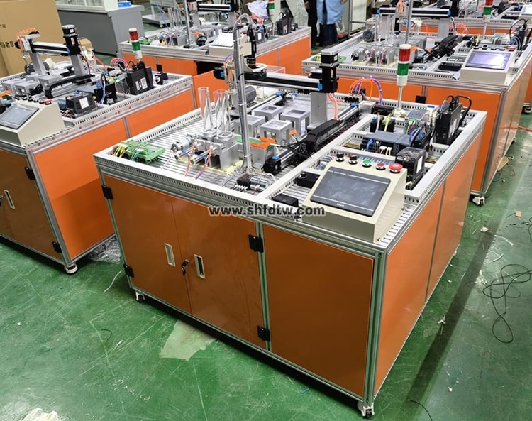 2、以上模塊對應(yīng)以下單元:PLC單元、485通信單元、工業(yè)視覺識別單元、RFID產(chǎn)品溯源單元、氣動控制基本單元、變頻調(diào)速單元、觸摸屏單元、以太網(wǎng)交換機(jī)、伺服系統(tǒng)控制單元等組成、溫度檢測變送單元。