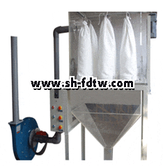 這套裝置主要由抽風(fēng)機(jī)、投料槽、濾袋、除塵器、收集桶、震動調(diào)速器、電路控制系統(tǒng)等部分組成,全部安裝在不銹鋼框架上,配備了直觀的控制屏110。