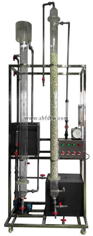 吹脫柱:同樣為有機(jī)玻璃材質(zhì),尺寸Φ100×1600mm,內(nèi)裝拉西環(huán)填料,能有效增加氣水接觸面積,提高吹脫效率。