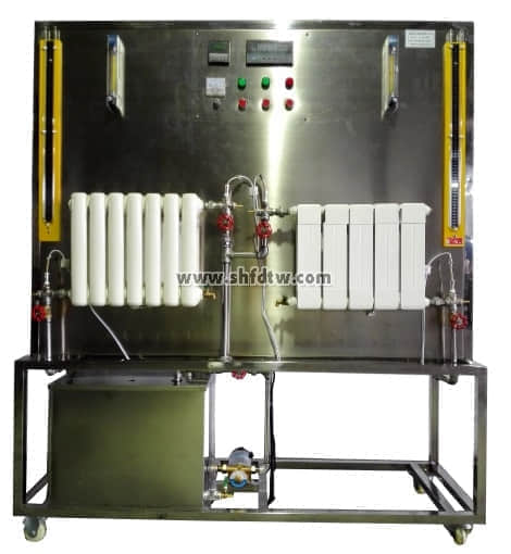 TW-RG744散熱器熱工性能實(shí)驗(yàn)臺(tái)是一款設(shè)計(jì)精巧、功能全面的教學(xué)設(shè)備,它主要由不同形式合金散熱器、不銹鋼電加熱水箱、流量調(diào)節(jié)閥門組、轉(zhuǎn)子流量計(jì)、循環(huán)熱水泵、水溫控制儀表、U型壓力計(jì)以及8路信號(hào)變送輸出巡檢儀等組成。
