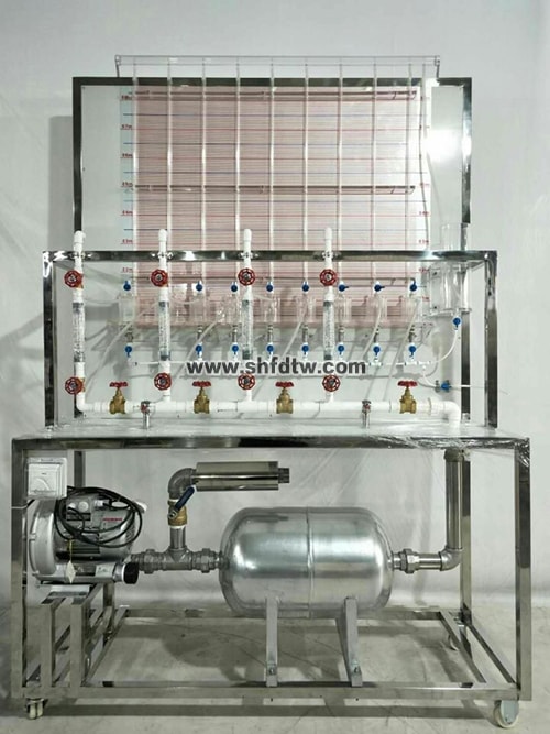 實(shí)驗(yàn)臺(tái)最核心的功能是能夠直觀展示熱網(wǎng)水壓圖的變化情況。通過(guò)垂直安裝在板上的透明玻璃管與測(cè)壓管水頭,學(xué)生可以直接讀取各用戶連接點(diǎn)處的供水干管與回水干管的壓力值。這種視覺(jué)化的展示方式抽象的水力概念變得具體可感,極大地降低了學(xué)生的學(xué)習(xí)難度。