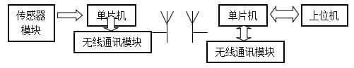 無線通訊傳感網(wǎng)主要由以下幾部分組成:AD轉(zhuǎn)換、發(fā)射部分、接收部分、上位機(jī)。系統(tǒng)結(jié)構(gòu)圖如下圖所示。