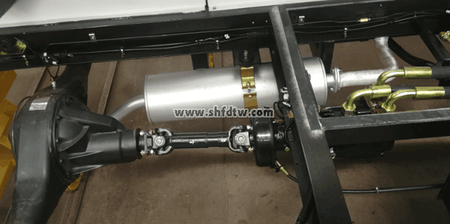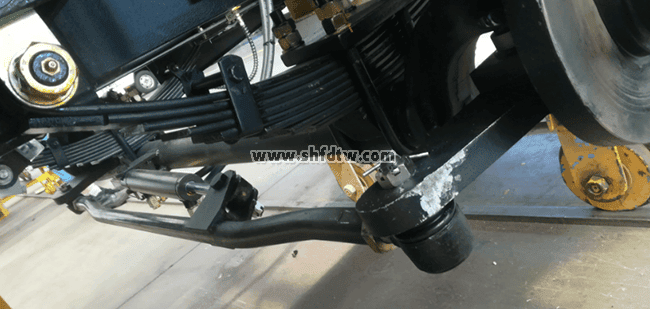 該試驗(yàn)臺搭建簡易汽車底盤,前后橋板簧懸架,前橋?qū)崿F(xiàn)全液壓轉(zhuǎn)向,后橋?qū)崿F(xiàn)驅(qū)動+制動,橋后橋承載能力均不小于5噸,行駛速度0~15Km/h;