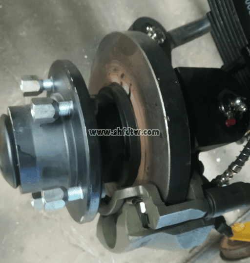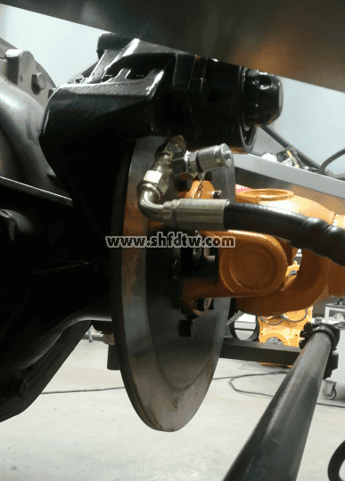 該試驗(yàn)臺配有兩種制動形式(前橋輪轂制動,后橋傳動軸制動),液壓制動器