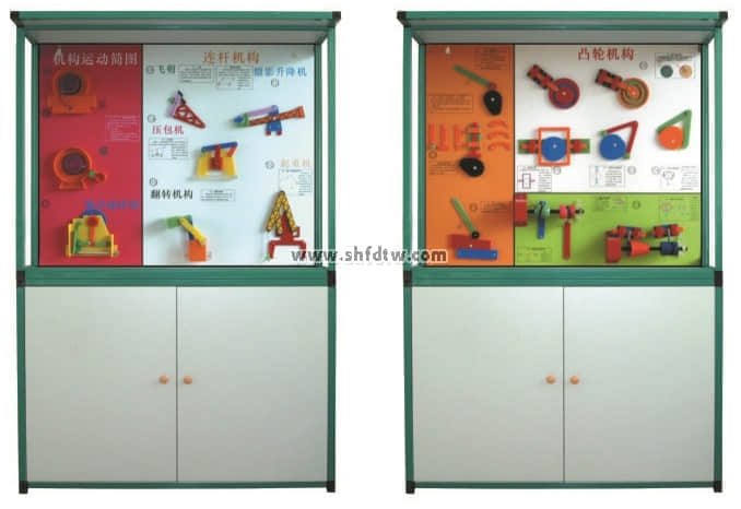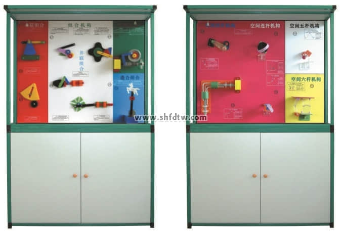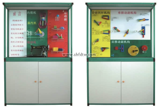 模型采用鼠標(biāo)或電腦遙控器任意選擇進行演示,模型材料采用進口有機板和硬聚氯制作而成,板面面板采用高強度室外寫真覆亞膜材料為底色,圖表和文字說明直接制作在上面。演示形象逼真,運行可靠,工藝美觀,使用本陳列柜可提高教學(xué)效果,節(jié)約學(xué)時是一套現(xiàn)代化功能為一體化的機械課程教學(xué)實用設(shè)備。