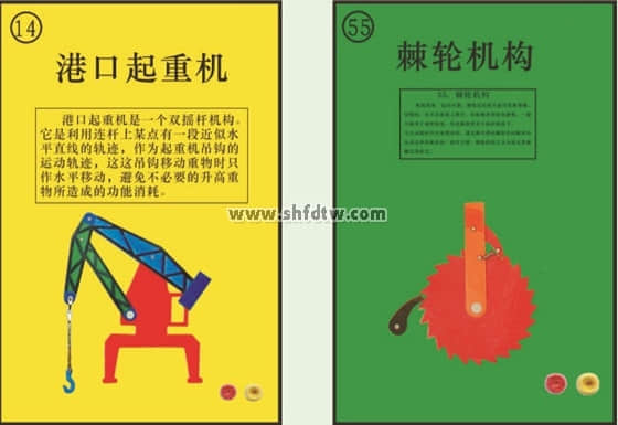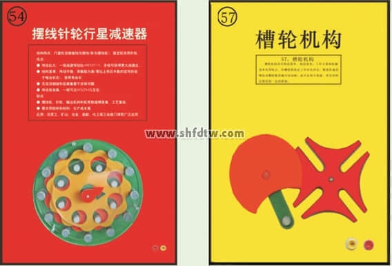 5、實(shí)驗(yàn)裝置采用70件模型和70塊文字圖表板和6個(gè)設(shè)計(jì)軟件,分別介紹各種機(jī)構(gòu)的功能和結(jié)構(gòu)及用途和作用。