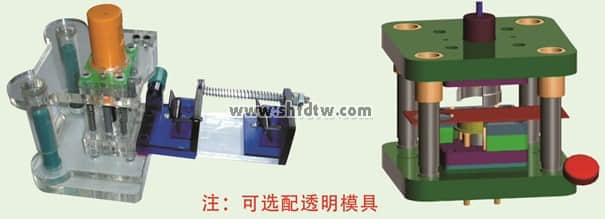 沖壓模具設(shè)計(jì)與制造多媒體仿真設(shè)計(jì)綜合實(shí)驗(yàn)裝置采用天威沖壓模具設(shè)計(jì)多媒體軟件用電腦動(dòng)畫語(yǔ)音演示模具結(jié)構(gòu)功能和原理,同時(shí)配合實(shí)物模具模型;天威多媒體軟件包含32件沖壓模具動(dòng)畫內(nèi)容;實(shí)驗(yàn)裝置采用32件模型和32塊說(shuō)明模塊板供學(xué)生使用;模型和模塊板可隨課程內(nèi)容需要進(jìn)行更換操作。