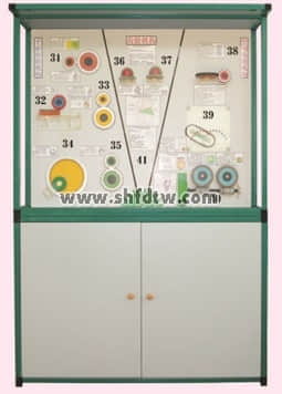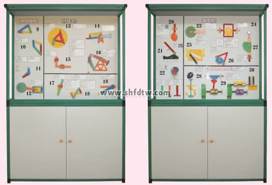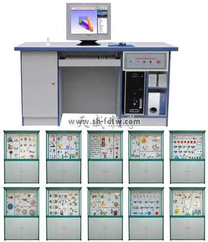 《機(jī)械原理與機(jī)械設(shè)計》陳列柜是根據(jù)天津大學(xué)機(jī)械原理與機(jī)械設(shè)計教研室集體編寫的十五規(guī)劃教材而設(shè)計的一套電化多媒體教學(xué)設(shè)備,內(nèi)容包含機(jī)械原理、機(jī)械設(shè)計、課程設(shè)計三大部分。陳列柜共分十個柜和一個電腦控制臺,進(jìn)行多媒體聲控同步解說演示。由PC機(jī)電腦控制順序或任選運(yùn)行每個柜模型動作,同時電腦播放圖形同步模型動作。