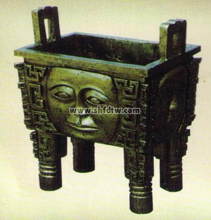 鼎原是一種欽器,商代時成為祭祀或饋贈的青銅禮器。商代的鼎有圓形和方形,造型古樸莊重,紋飾刻鏤精工,氣魄雄偉,著名的《司母戊鼎》就是祖庚祭祀戊而作。