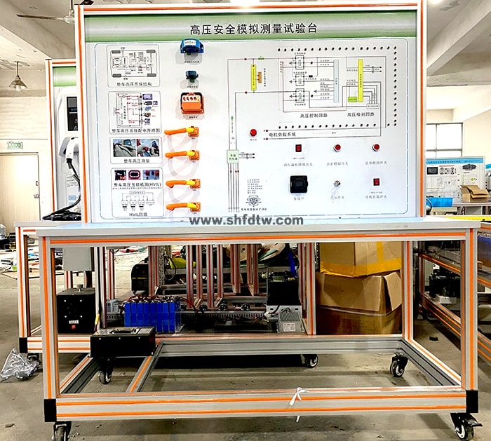 動力電池組、國標充電槍與充電座、漏電傳感器模塊、絕緣傳感器模塊、安全維修塞模塊、漏電模擬操作單元、高壓安全系統(tǒng)操作單元、操作控制臺、訓(xùn)練控制按鈕、一體化全鋁合金型材搭建的移動臺架(1500×700×1700mm 帶自鎖腳輪裝置,帶安裝檢測端子的原理面板,面板1448×940mm)、設(shè)備操作說明書。