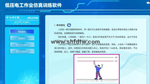 本產(chǎn)品依據(jù)中華人民共和國勞動(dòng)和勞動(dòng)安全行業(yè)標(biāo)準(zhǔn)(LD/T81.2-2006)《“維修電工”職業(yè)技能實(shí)訓(xùn)和鑒定設(shè)備技術(shù)規(guī)范》與教育部有關(guān)專業(yè)教學(xué)大綱而設(shè)計(jì)研制。包含電工初步知識(shí)(電工基礎(chǔ)、電工儀表使用、導(dǎo)線安全連接、安全用電工具、安全用電標(biāo)志),觸電急救(觸電的方式、安全防護(hù)措施、接地與接零保護(hù)、人工呼吸,心肺復(fù)蘇等急救方法),風(fēng)險(xiǎn)排除(滅火器類型、滅火器的使用),電工電子基本操作(包括低壓電器、電機(jī)與變電器、照明電路、電子技術(shù))等4大模塊,15個(gè)實(shí)訓(xùn)單元,72個(gè)實(shí)訓(xùn)項(xiàng)目,采用3D虛擬仿真技術(shù)展示。軟件以技能為核心,操作步驟為主線,以學(xué)生交互訓(xùn)練為主體,具有三維可視化、智能化、全交互的特點(diǎn),集職業(yè)性、情境性、過程性、交互性和靈活性于一身,性價(jià)比極高。為職業(yè)教育與技能實(shí)訓(xùn)、鑒定信息化、現(xiàn)代化提供了豐富的教學(xué)資源。