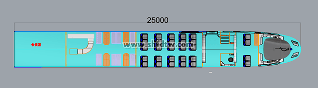 6)門區(qū)之后設(shè)置二等旅客區(qū),配備 4 排 20 個二等旅客座椅(2+3 布置);