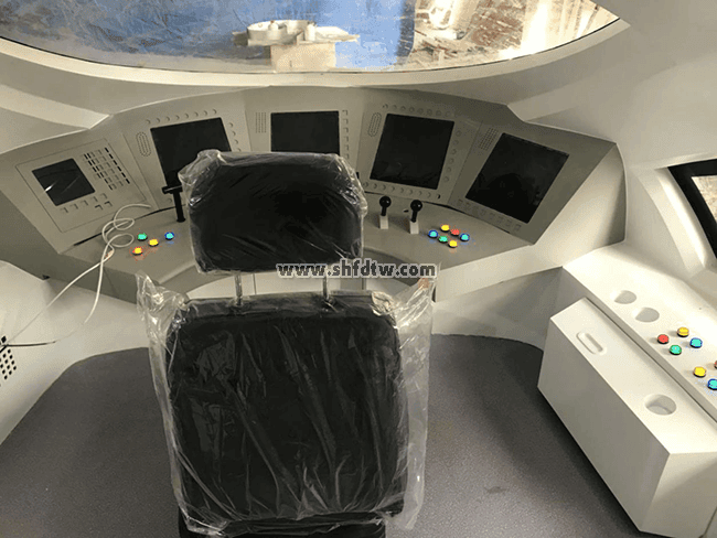 1)前端設(shè)置模擬駕駛艙,外形 1:1 仿真和諧號 CRH380B 動車,駕駛室含駕駛臺。