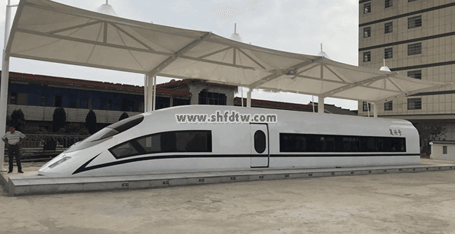 長 25 米;寬 3.25 米;高 2.7 米;駕駛室根據(jù)和諧號 CRH380B 動車的外形 1:1 仿真制作, 駕駛室內(nèi)部設(shè)施均為 3d 模擬件。無功能。駕駛員 座椅 1 個; |
