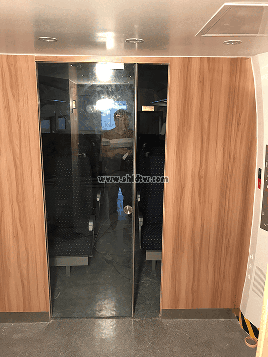 前車采用和諧號高鐵仿真車門,電動開門軌距 |