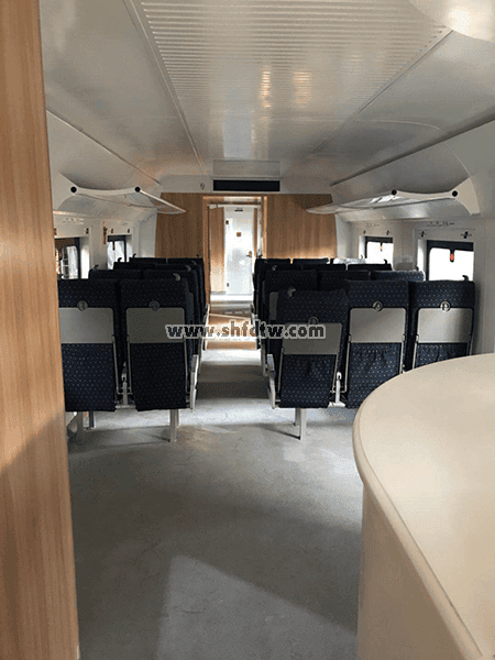 前部高鐵車廂裝飾主要由:天花板、側(cè)壁板、塑膠地板.標牌等組成。內(nèi)部裝飾均有足夠的強度和剛度;用于內(nèi)部裝飾的材料或材料表面具有阻燃、環(huán)保的特性。 |