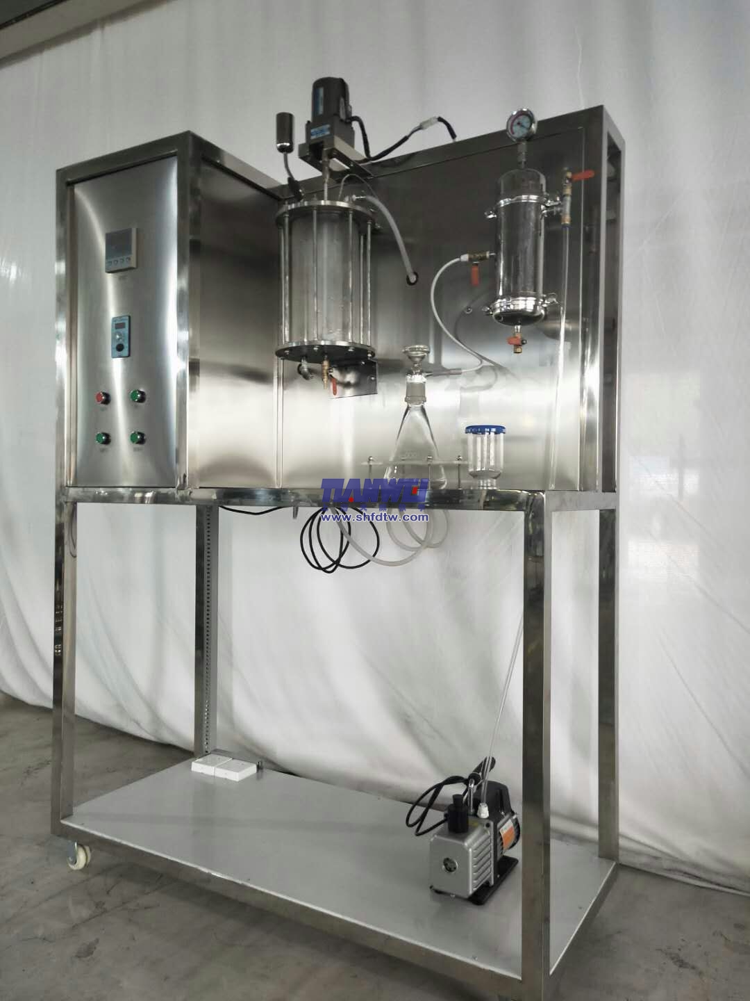 本裝置由電動(dòng)攪拌器、玻璃重結(jié)晶器(4L容積)、玻璃過濾器(200ML)、真空泵、緩沖罐(5L)、恒溫槽、循環(huán)水泵、鉑電阻溫度傳感器、數(shù)顯溫度儀、調(diào)速器、電加熱器、電器:接觸器、開關(guān)、漏電保護(hù)空氣開關(guān)。管路、管件、快接件及閥門均采用304不銹鋼材質(zhì),測(cè)控、電器設(shè)備在實(shí)驗(yàn)臺(tái)架上。304不銹鋼框架實(shí)驗(yàn)臺(tái)(配腳輪均為萬向輪帶禁錮腳)。