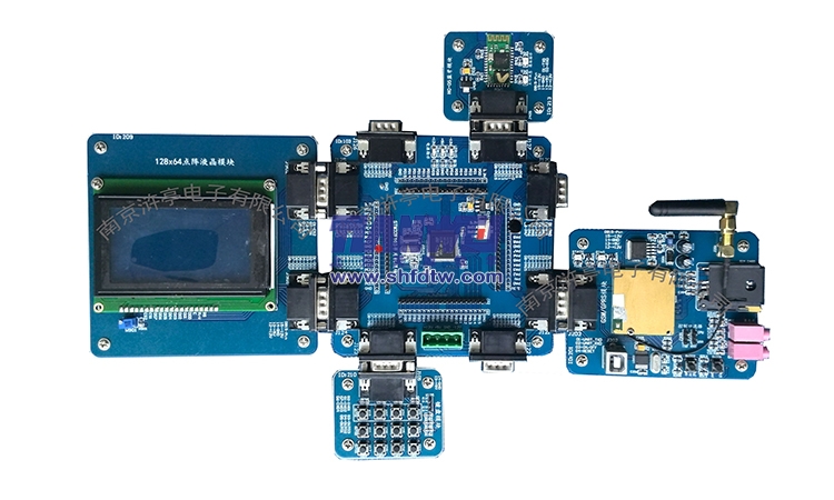 用于通信技術實訓課程。根據實用課題內容,讓學生自己了解通信過程,自己調試,最終完成一個具有實際功能且具有實用價值的產品模型。如:搭建基于GSM模塊、鍵盤模塊和LCD模塊實現(xiàn)一個簡單的實用手機系統(tǒng)。