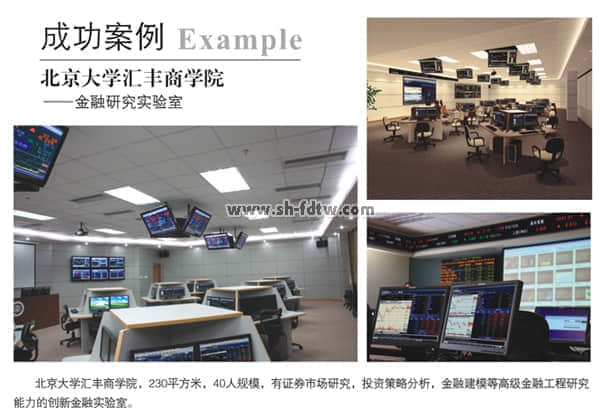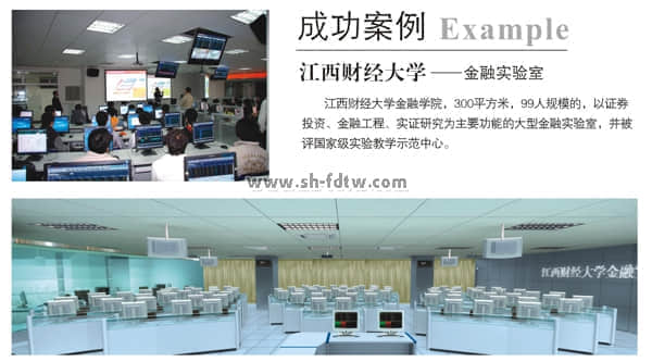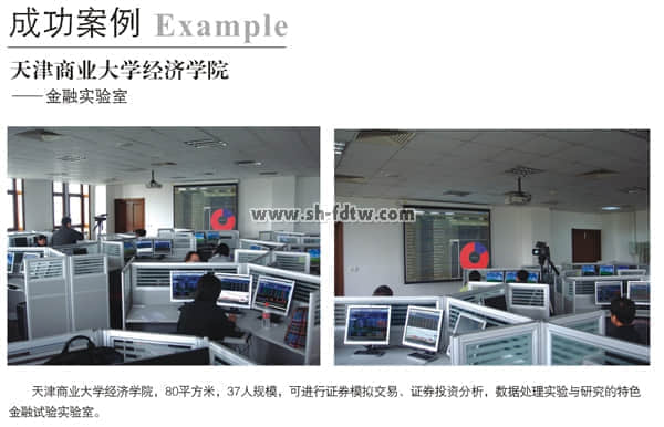 天威公司通過為院校建立專業(yè)的金融實(shí)驗(yàn)室或完善提升相關(guān)設(shè)備,使學(xué)生得到實(shí)際訓(xùn)練從而激發(fā)自我的探究意識和創(chuàng)新動機(jī),為學(xué)生就業(yè)和創(chuàng)業(yè)打下堅(jiān)實(shí)的基礎(chǔ)。此類仿真的模擬實(shí)驗(yàn)室,不僅節(jié)省大量的人力、物力和財(cái)力,并且可加深學(xué)生對所學(xué)知識的理解,提高學(xué)習(xí)效率。相信透過為院校營造現(xiàn)代型、資源型、實(shí)踐型、信息化、學(xué)習(xí)型的校園環(huán)境而贏得品牌效應(yīng)。