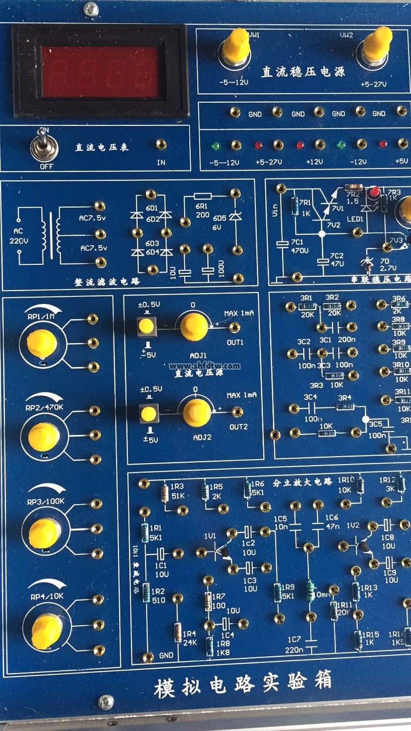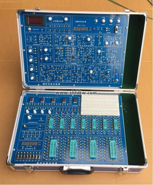 該實(shí)驗(yàn)箱的實(shí)驗(yàn)板正面采用進(jìn)口波紋漆為底,印有原理圖及符號(hào),裝有相應(yīng)元器件,增加了學(xué)生的感性認(rèn)識(shí),需要測(cè)量及觀察的部分,裝有鎖緊式接插件,使用直觀、可靠,維修方便、簡(jiǎn)捷,實(shí)驗(yàn)電路采用單元電路方式設(shè)計(jì),每個(gè)單元電路以基本電路為主,再連接不 同的元件為該電路參數(shù)或通過(guò)不同的單元電路組合,完成不同的實(shí)驗(yàn)要求。該箱由一體形鉛合金型材制成,色澤造型高雅氣派,箱體牢固可靠,不變形,重量輕,絕緣安全性能好,開(kāi)關(guān)箱蓋方便可靠, 外型美觀。