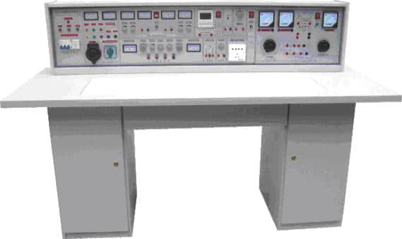 3、示教控制臺(tái):1臺(tái)示教控制臺(tái),分別控制12臺(tái)學(xué)生臺(tái)的電源,通用電路板演示屏立在實(shí)驗(yàn)臺(tái)上,尺寸150cm×70cm,用于講解、演示。