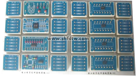 提供一套實訓(xùn)模塊,可以完成直流電路、模擬電子技術(shù)、數(shù)字電子技術(shù)和電子綜合應(yīng)用實訓(xùn)項目。實訓(xùn)模塊面板采用PCB板制作而成,器件和信號接口均已引至板上的專用插座,實訓(xùn)模塊有四個彈性插腳,與專用實訓(xùn)孔板配套使用。