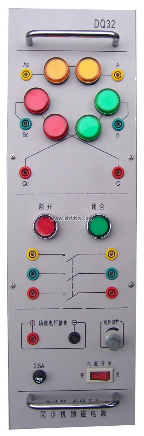 提供220V(0.5A)勵(lì)磁電源及0~250V(3A)連續(xù)可調(diào)穩(wěn)壓電樞電源(內(nèi)設(shè)過流過壓保護(hù)措施)各一組,并設(shè)有直流數(shù)顯電壓表及切換開關(guān)。