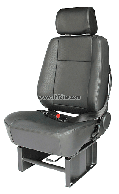 駕駛座椅:具有皮質(zhì)面料實車司機(jī)座椅,高回彈泡沫可調(diào)靠背、坐墊、頭枕,鍍鉻枕桿,噴漆骨架,雙鎖滑軌,塑料大殼彈簧調(diào)角器。