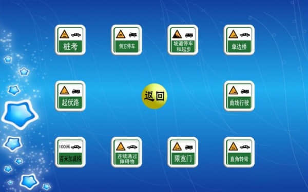 場(chǎng)地9項(xiàng):通過連續(xù)障礙、通過單邊橋、直角轉(zhuǎn)彎、側(cè)方位停車、上坡定點(diǎn)停車與坡道起步、限速通過限寬門、百米加減檔、起伏路駕駛、曲線行駛。