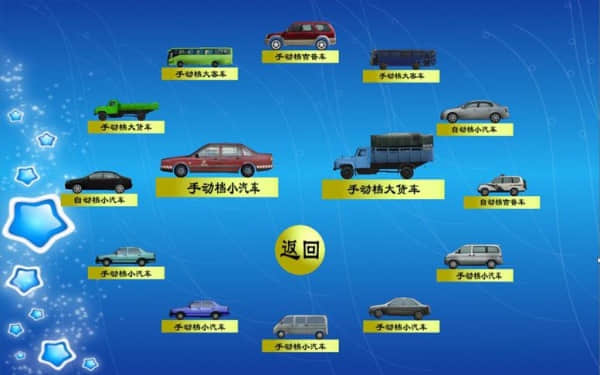 系統(tǒng)提供“手動(dòng)檔小汽車”,“手動(dòng)檔吉普車”,“手動(dòng)檔大貨車”,“手動(dòng)檔大客車”,“自動(dòng)檔小汽車”和“自動(dòng)檔吉普車”等訓(xùn)練車型。